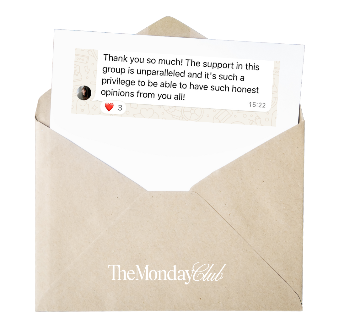 I created The Monday Social Club to be the support I wish I had when I was figuring it all out - a space where you can ask questions, get honest feedback, feel seen and grow your confidence without burning out.