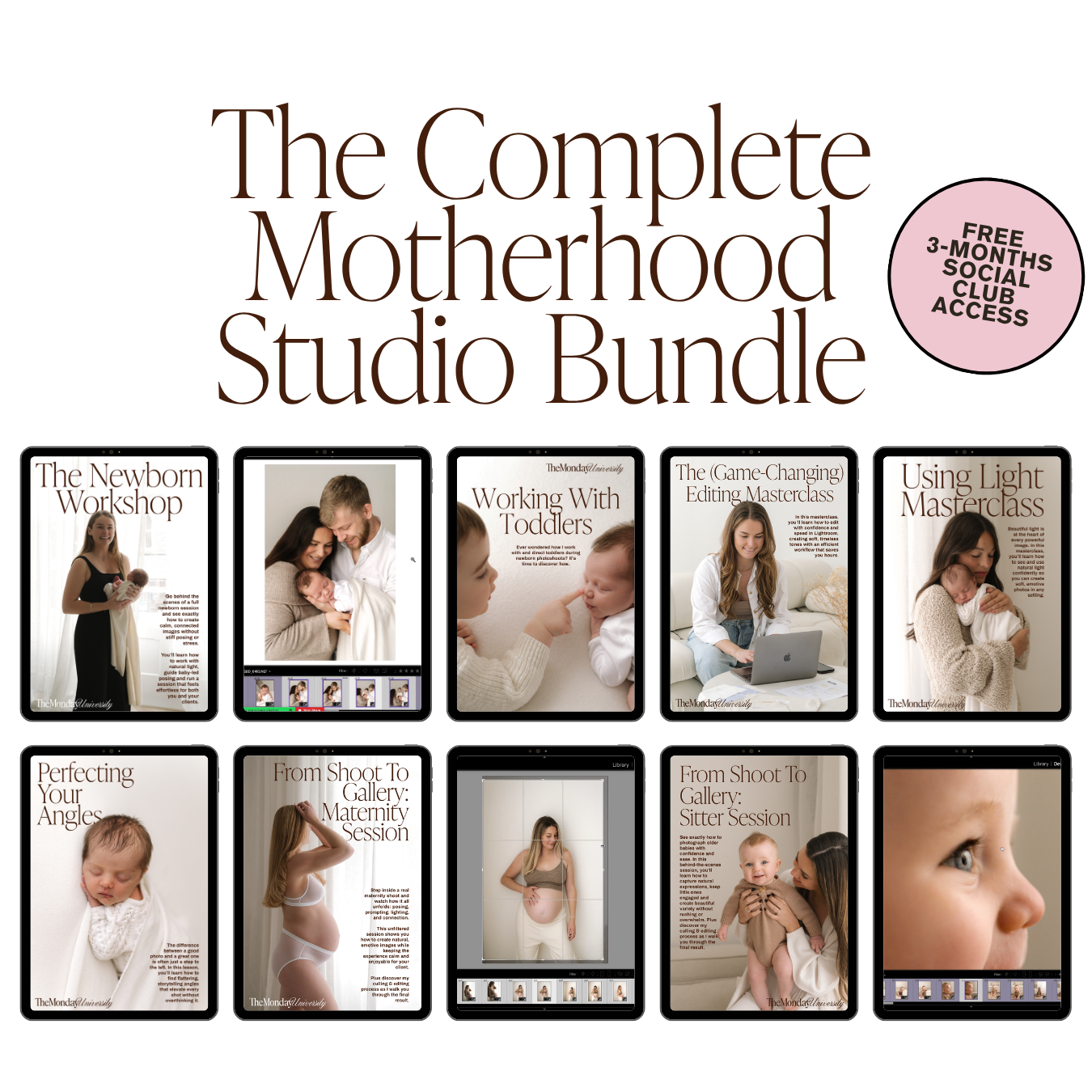 The Motherhood Studio Collection shows you the whole process behind real newborn, maternity and sitter sessions, alongside the editing and technical training that bring each image to life.
