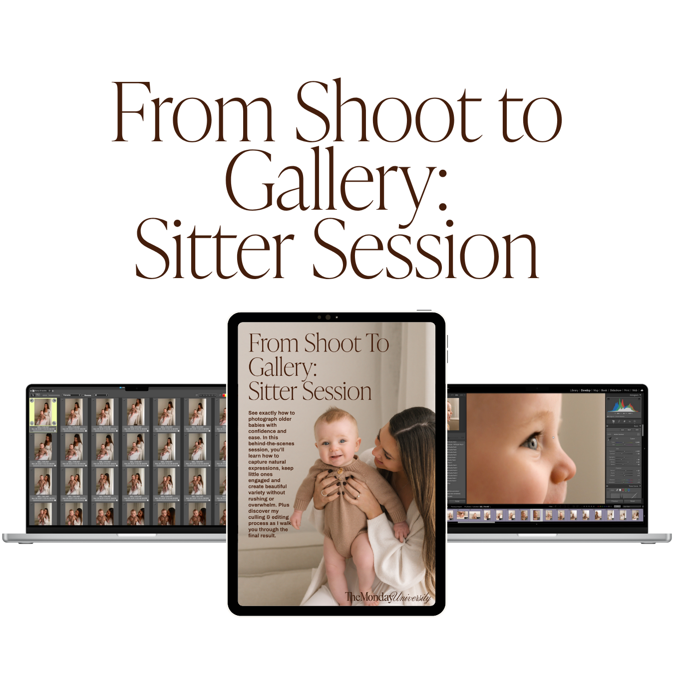 Watch me edit the full sitter gallery using clean tones, simple refinements and my signature soft finish. Learn how to create consistency even when expressions and movement vary from shot to shot.