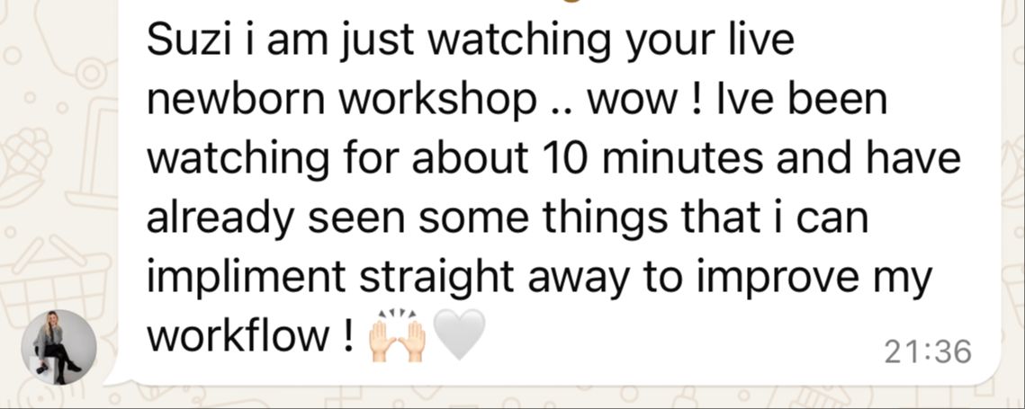 In this live, behind-the-scenes online workshop, you’ll get a front-row seat inside my studio as I walk you through my entire newborn session flow - all from the comfort of your sofa.